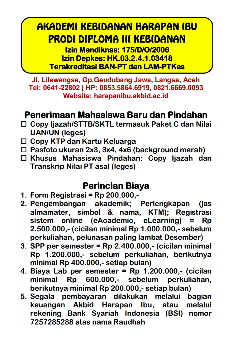 Membayar biaya pendaftaran dan biaya lainnya sebelum perkuliahan.